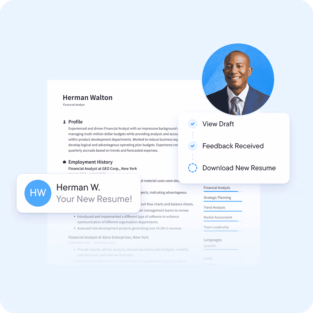 Amazing work. My 15-year-old resume got updated into a sleek, modern version, ready for today's job market.